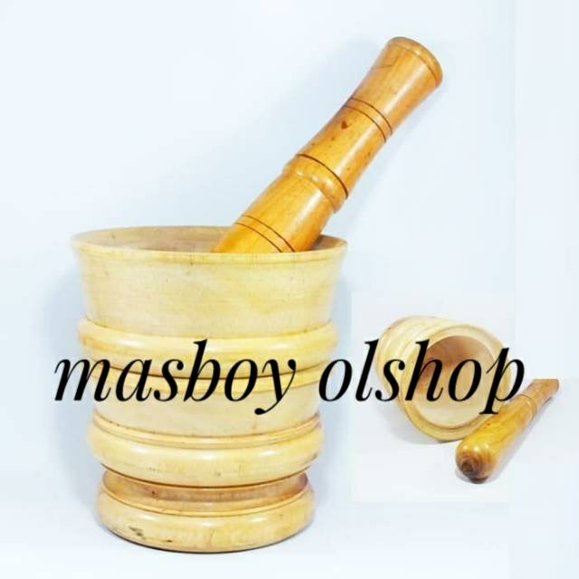 Terbuat dari kayu berkualitas dan dikerjakan dengan rapi serta di finishing Vernish dibagian luarnya saja.Aman digunakan untuk makanan & Obat.Harga sudah termasuk dengan penumbuknya/ Aluk.Lumpang dr kayu denganukuran :Tinggi -/+ 18 cm Lebar -/+ 17 cmharga cuma Rp. 55.000 sdh termasuk tumbukannya(alu)..always ready st