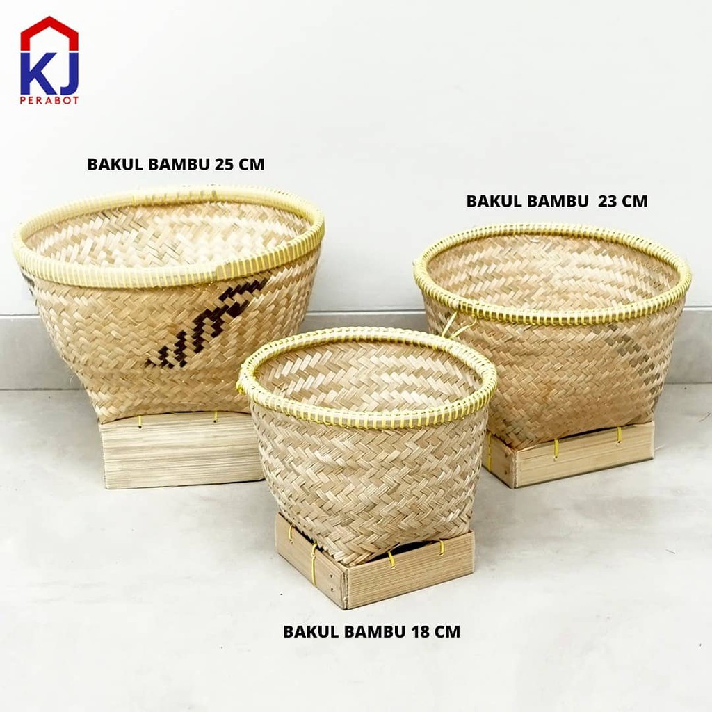 Hadirkan suasana natural di meja makan dengan menghidangkan nasi di bakul/sangku bambu baik di rumah maupun restoran. Terbuat dari bahan bambu asli berkualitas yang ringan dengan warna natural, dilengkapi dengan tutup sehingga nasi dapat terhindar dari debu dan binatang kecil. Berikut spesifikasinya:.BAKUL NASI BAMBU 23 CM + TUTUP.Bahan: BambuDiameter: 23 cmTinggi : 17 cmBerat: 300 gramVolume Packing: 1 kg.BAKUL NASI 25 CM TANPA TUTUP.Bahan: BambuDiameter: 25 cmTinggi: 22 cmBerat: 400 gramVolume Packing: 1 kg.BAKUL NASI BAMBU 23 CM TANPA TUTUP.Bahan: BambuDiameter: 23 cmTinggi: 19 cmBerat Produk: 350 cmVolume Packing: 1 kg.BAKUL NASI BAMBU 18 CM TANPA TUTUP.Bahan: BambuDiameter: 18 cmTinggi: 15 cmBerat Produk: 300 gramVolume Packing: 1 kg*Harga sewaktu-waktu dapat berubah, konfirmasi dahulu sebelum me