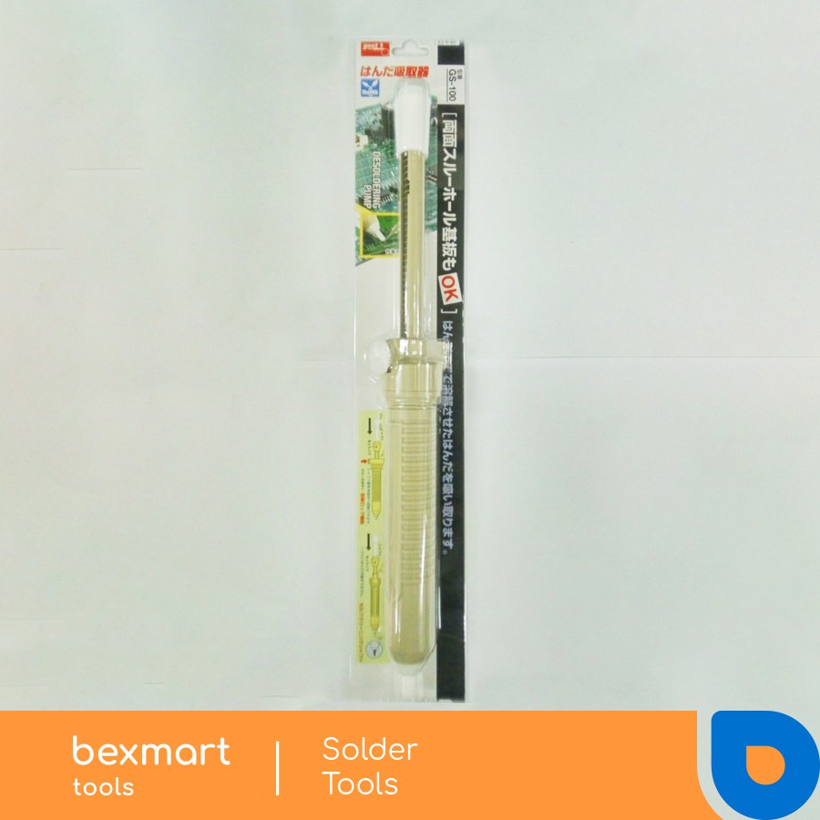 MODEL : GS-100Color : ivolyLength : 330mmWhen Stored : 240mmDiameter : 23mmApplicable NozzleFeature :Self-Cleaning Shaft- When the plunger is pushed, a piston extends out the nozzle. This prevents solder build-up.Plunger Lock Function- The plunger can be stored inside the shaft by pushing it in completely, and pressing the vacuum release button. Compact storage.Made inTaiyo electric ind.co.,ltd