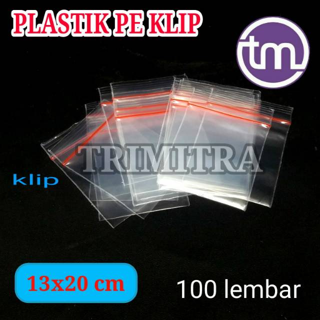 Berat 270 grNote:- Produk ini selalu ready stock, silahkan langsung di-order.- Harga yang tertera untuk 1 bungkus isi 100 lembar.- 100 lembar adalah hitungan dari pabrik, jumlah bisa kurang atau juga lebih dan kami tidak menghitung ulang.Features:- Lebih bening dibandingkan produk lain yang sejenis.- Praktis karena lebih mudah untuk dibuka dan ditutup.- Awet dibuka berulang ulang tidak mudah rusak.- Lebih murah harganya.- Mutu terbaik.Specifications:- Size: 13cm x 20cm- Diukur dari ujung ke ujung- Jarak klip ke ujung atas 1,5 cm- Material: PE- Tebal 40 mikron- Ada klip / zipperUkuran yang tersedia di toko kami sebagai berikut:4x6 cm5x8 cm6x10 cm7x10 cm8x12 cm8,7x13 cm10x15 cm11x17 cm13x20 cm16x25 cm20x30 cm25x35 cm30x40 cm35x45 cmBeda ukuran beda harga. Silahkan cek di eta