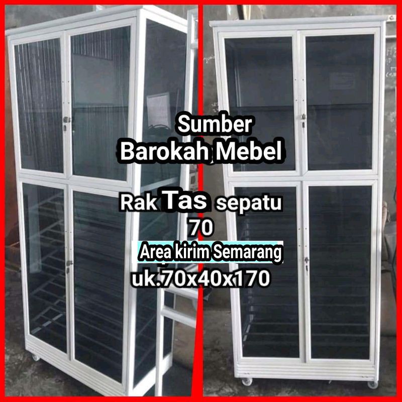 #raksepatu #raktas #etalaseRak sepatu, rak tas, dllBahan aluminium dan kacaBelakang plat alumuniumHanya bisa kirim ke kota Semarang, Mranggen, SayungLuar kota tidak bisa kirimKirim pakai pick up tokoNo ekspedisiFree ongkirBisa bayar CODClose order hari Rabu Jadwal kirim hari Kamis Jumat Sabtu Minggu Kurang jelas CHAT duluBisa request warna lain :Coklat, merah, pink, ijo, biru, putihBisa request kaca :Riben (hitam) Seruni (butek motif) Kurang jelas CHAT saj