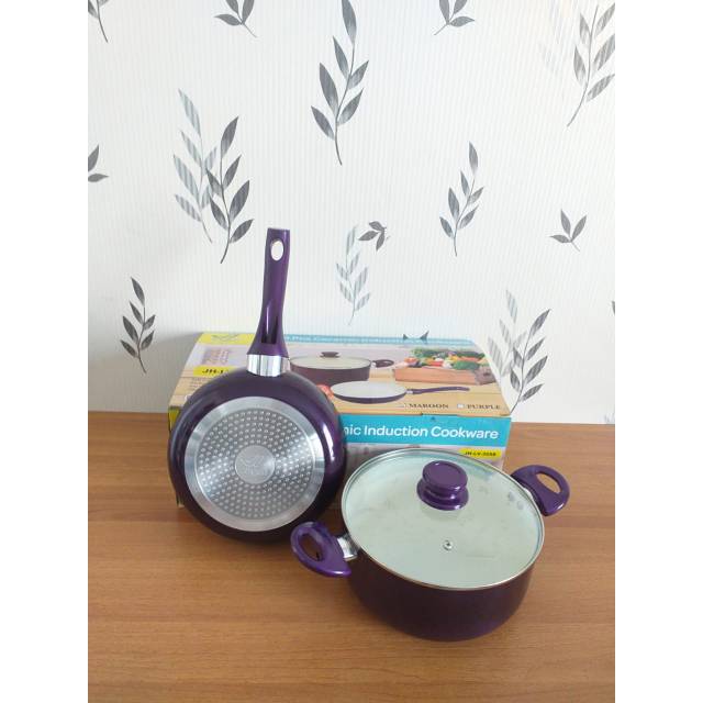 Panci Set 3 Pcs Keramik Induksi JagooAnti Gores- Mudah Dibersihkan- 1pc Saucepan + tutup kaca : diameter 24cm ; tinggi 10cm- 1pc Frypan : diameter 24cm ; tinggi 5 cm- Bahan Ceramic Anti LengketKeterangan :- Panci anti lengket jaminan mutu-lapisan anti gores, tdk mudah terkelupas dan berkarat-bahan tebal, kuat, tahan lama-handle tahan panas , nyaman di tangan- Panci terbuat dari bahan stainless dengan lapisan keramik di bagian atas nya (dapat menggoreng tanpa minyak)Memasak lebih hemat tanpa menggunakan bnyk minyak dan mudah dibersihkan- Bagian bawah panci terdapat plat stainless steel yang berfungsi untuk mempercepat pemanasan- Dapat digunakan di semua jenis kompor (TERMASUK KOMPOR INDUKSI)Ready warna Maroon dan