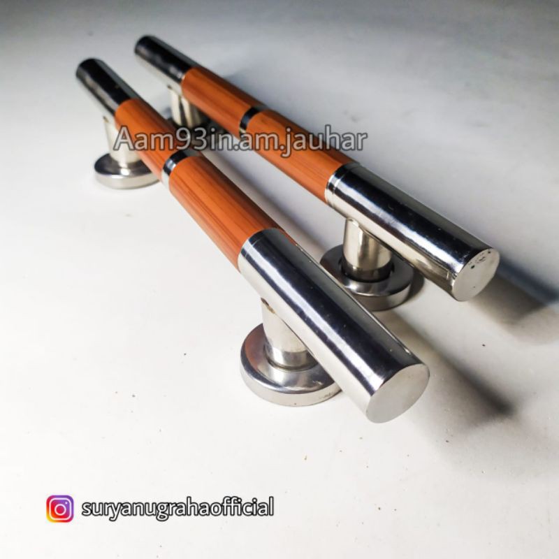 Name: Handle Pintu Rumah Bulat Coklat Kayu Tarikan Gagang Stainles Kunci 25 Cm Natural Lis Kombinasi 2 Cm